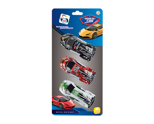 PI4997 – RADICAL CARS – METAL – COLEÇÃO PATRULHA – 3 CARROS – CARTELA